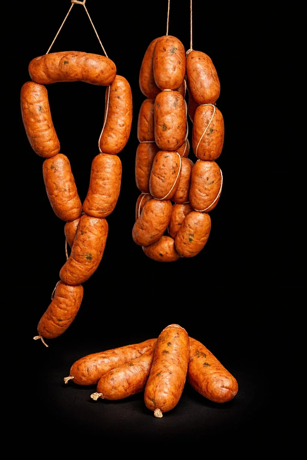 🌟 Longaniza Praga: curada con especias especiales y ahumada en leña serrana. Receta artesanal de generación en generación.